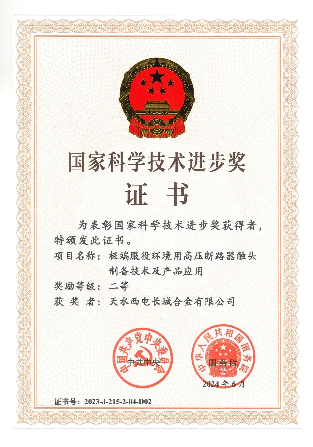 天水合金1項(xiàng)成果榮獲國(guó)家科學(xué)技術(shù)進(jìn)步獎(jiǎng)二等獎(jiǎng)近日,2023年度國(guó)家科學(xué)技術(shù)獎(jiǎng)在京揭曉,一大批貢獻(xiàn)卓越的,科學(xué)家和標(biāo)志性成果,獲得國(guó)家科技獎(jiǎng)勵(lì)。其中天水合金1項(xiàng)成果《極端服役環(huán)境用高壓斷路器觸頭制備技術(shù)及產(chǎn)品應(yīng)用》獲評(píng)國(guó)家科學(xué)技術(shù)進(jìn)步獎(jiǎng)二等獎(jiǎng)。 該項(xiàng)目由中國(guó)西電所屬天水合金、西開(kāi)電氣、西開(kāi)有限3家企業(yè)參與,圍繞極端服役環(huán)境用高壓斷路器觸頭制備技術(shù)及系列產(chǎn)品研制,開(kāi)展了觸頭材料研發(fā)-應(yīng)用驗(yàn)證-產(chǎn)品迭代的系統(tǒng)性研究,形成了一套高電壓大容量電工觸頭材料性能檢測(cè)和失效分析研究理論,開(kāi)發(fā)了超強(qiáng)耐燒、超高耐磨...